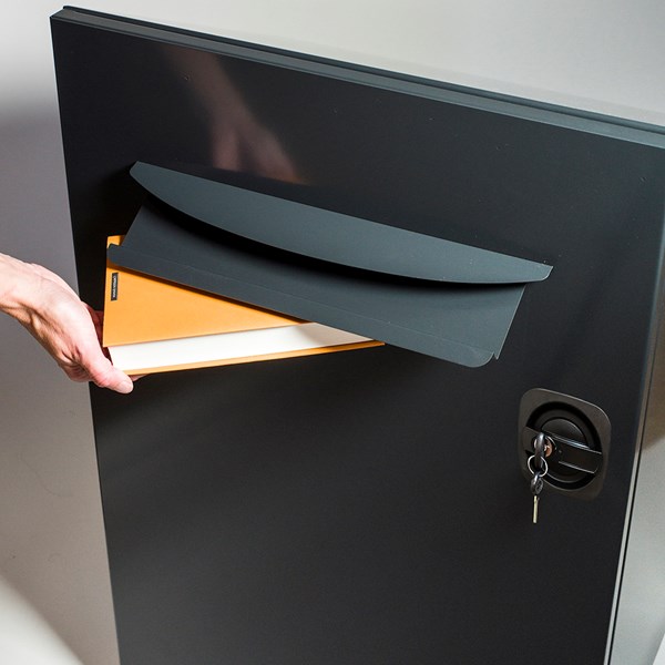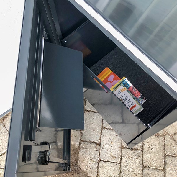 Armário de retorno robusto e com chave em metal para uso externo. Adequado para bibliotecas com horário limitado.