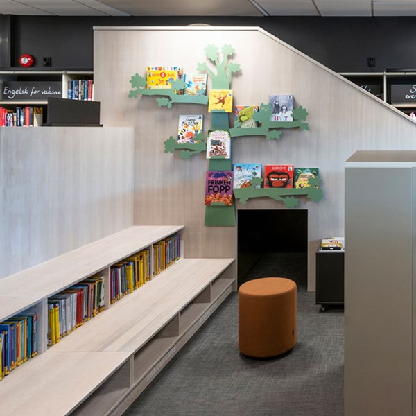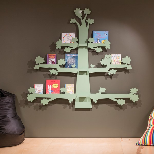 Árvore Expositora de livros ou outras mídias que são decorativas e úteis.