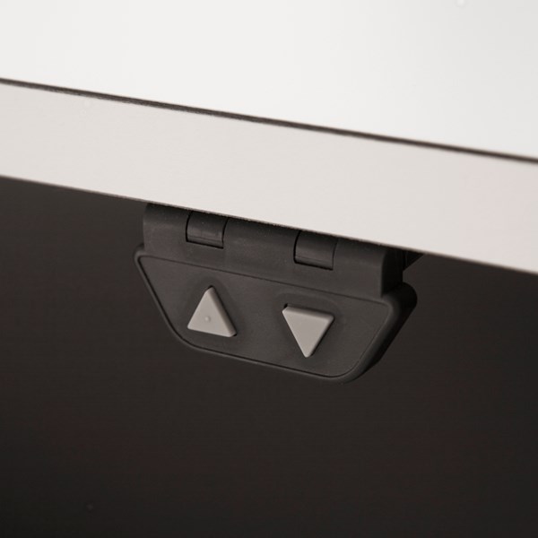 O Info Pod é entregue montado com pés e rodas ajustáveis (mobilidade limitada). Retraia os pés para que as rodas entrem em contato com o chão e faça o contrário caso a queira mover.