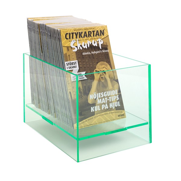 Uma caixa – duas utilizações (conforme é possível ver nas imagens) – use com a parte superior aberta e armazene o que quiser, ou vire e coloque a abertura na parte inferior e utilize como uma plataforma para exibir brochuras, livros, jornais e revistas.