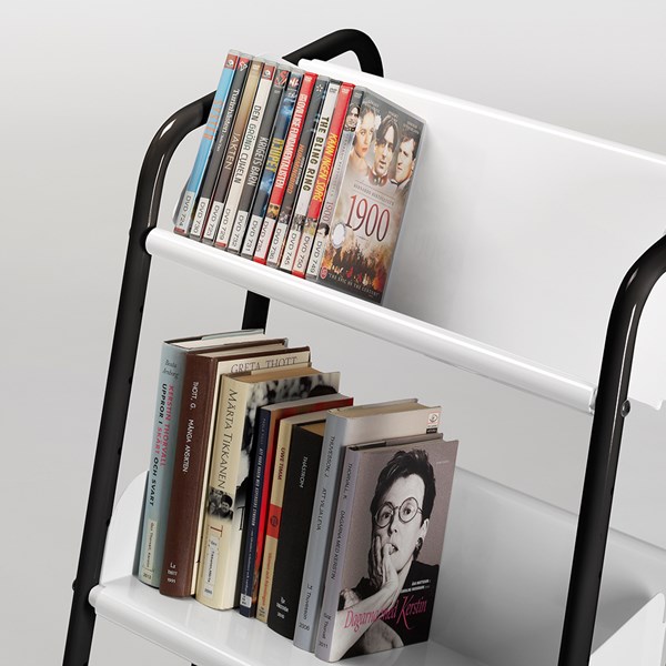 O ângulo do carrinho garante o armazenamento seguro da mídia e também fornece uma boa visão geral dos livros que você deseja manusear.
