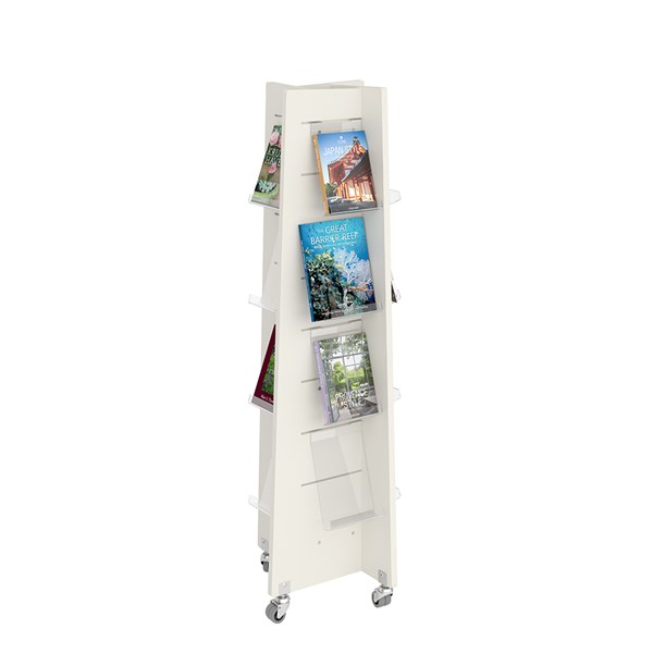 Torre de exibição de quatro lados para exibição frontal de livros, periódicos, etc.