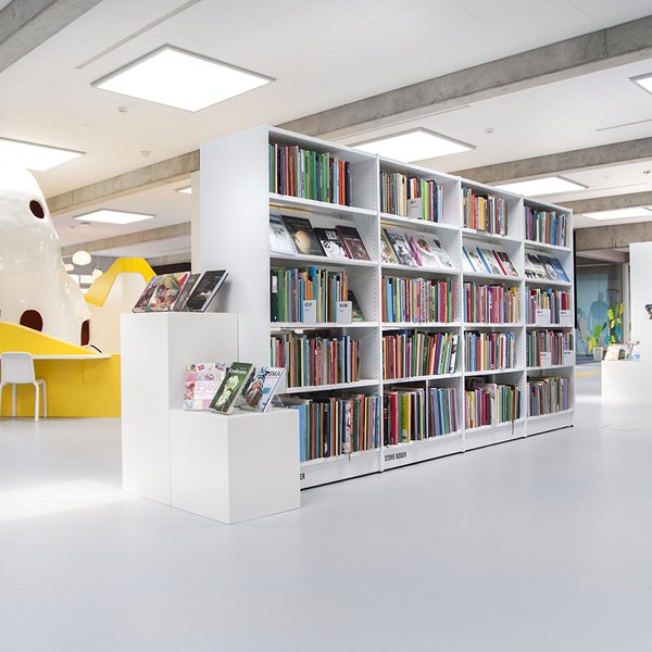 Perfeito para criar pequenas e grandes ilhas na biblioteca. O seu formato simples encaixa-se bem na maioria dos lugares e faz com que os livros se destaquem.