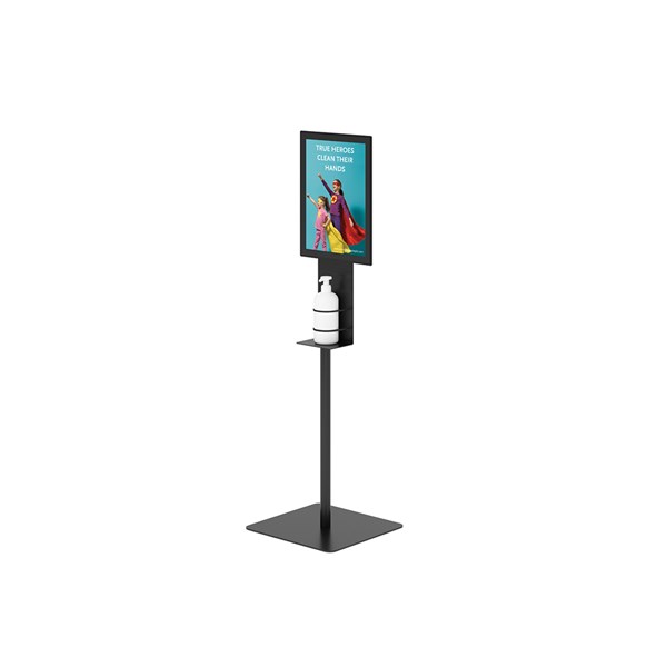 Suporte de chão autónomo e estável para desinfeção das mãos com quadro magnético A4 para troca de informações.